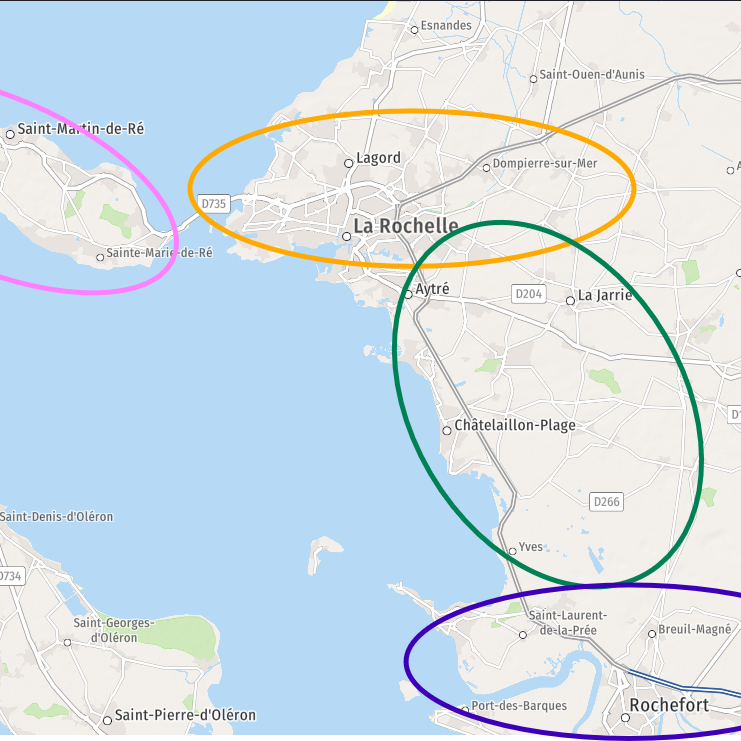 Châtelaillon-Plage, La Jarrie, Dompierre-sur-Mer, Angoulins, Salles-sur-Mer